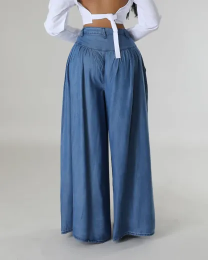 Solid Color Long Wide Leg Flared Pants